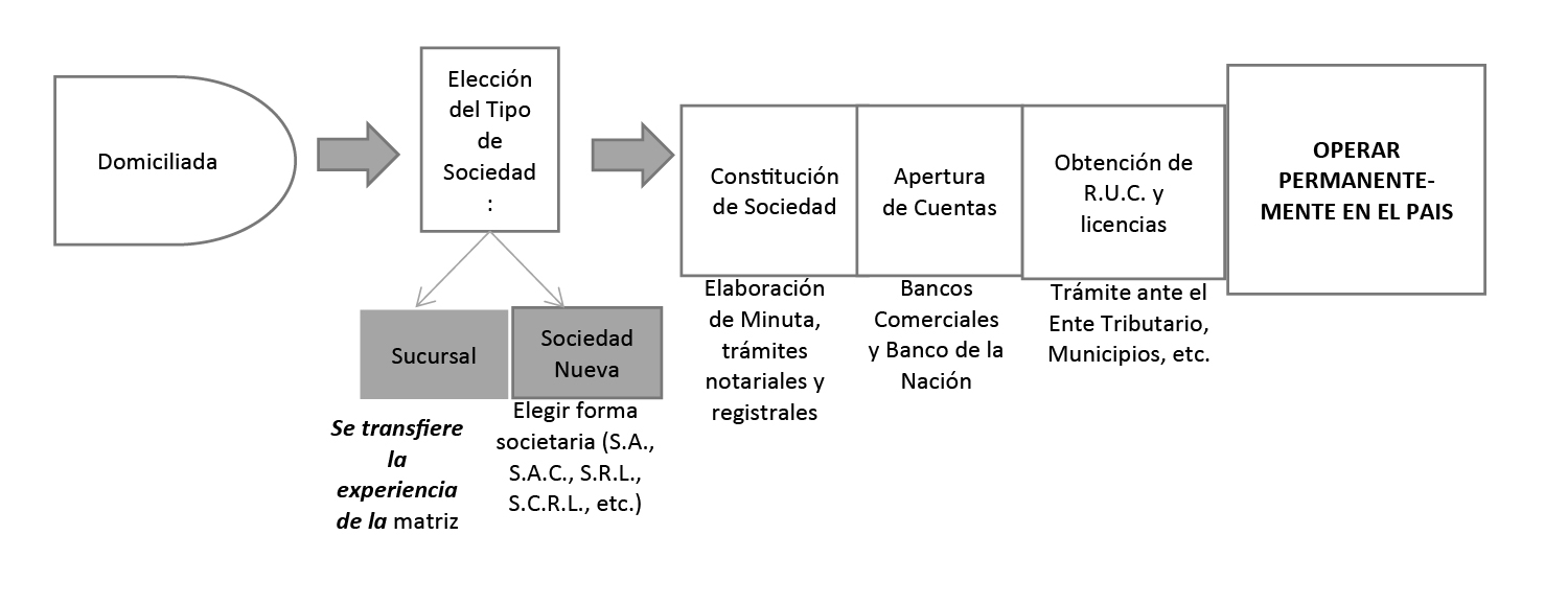 Se analiza la implantación de una empresa desde el punto de vista del mercado al que va dirigido y el producto o servicio que se quiere introducir. Nos preguntamos: ¿Es importante llegar aquí con una sucursal? ¿El nombre o experiencia de la empresa son vitales para introducirse en un mercado nuevo? ¿Debemos constituir una nueva empresa? ¿Qué riesgos tiene la inversión y la casa matriz en sus nuevos negocios en ultramar? ¿El producto o servicio es realmente competitivo en este mercado? Eso nos lleva a analizar la mejor forma societaria para que la empresa pueda facturar, sea por la venta de productos o servicios, obtención de contratos, tanto en el mercado privado como público. Solo después de eso es posible recomendar una forma trabajo a las empresas que quieren implantarse en este mercado.
